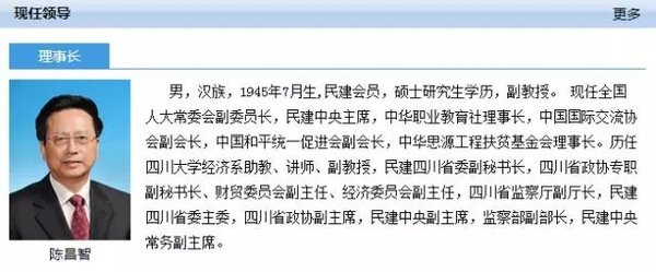 现任理事长为全国人大常委会副委员长、民建中央主席陈昌智。