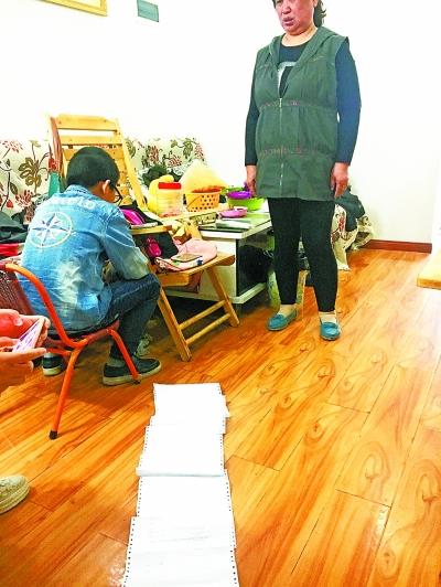 家中地板上摊放着游戏消费清单 记者张全录 摄