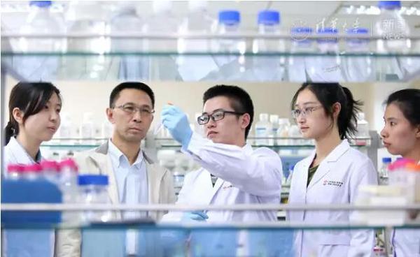 罗永章团队在实验中。图片来自清华大学新闻网。