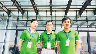 王金福教授(中)和学生在海南文昌发射中心合影