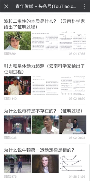 “青年传媒”头条号曾发表该作者多篇“重大发现”文章。目前该头条号已被封禁。