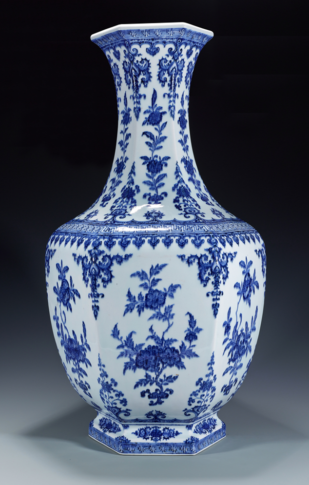 清乾隆 青花三多花卉纹六角大瓶