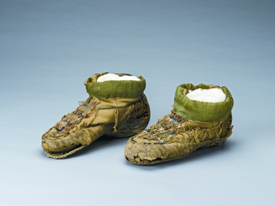 精绝国故址勾花皮鞋上展