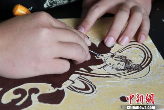 资料图:各式各样的刀具、木板和油彩,摆满桌子,兰州交通大学学生正在制作“版画”。 刘玉桃 摄