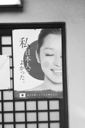 【环球时报记者 王盼盼 丰豆】“这个广告是谁制作的?”据《赫芬邮报》日文版网站9日报道,最近日本京都街头许多地方出现一则海报(如图),上面是一位闭着眼睛微笑的美女,海报上写着“做日本人真好”。报道称,该海报是日本神社团体张贴的,目的是传播日本爱国主义。但不少网民敏锐地发现,该美女照片的作者是常驻北京的美国摄影师Lane Oatey(中文名为雷恩),因此纷纷猜测模特是中国人。9日,《环球时报》记者联系到雷恩,他明确表示,该照片是自己几年前拍的,美女模特是中国人。