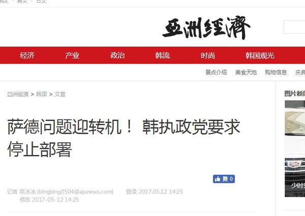 韩国《亚洲经济》5月12日报道称,共同民主党“萨德”对策特别委员会12日表示,“新政府已经成立,以国防部为代表的行政部门应该立刻停止非法部署“萨德”。