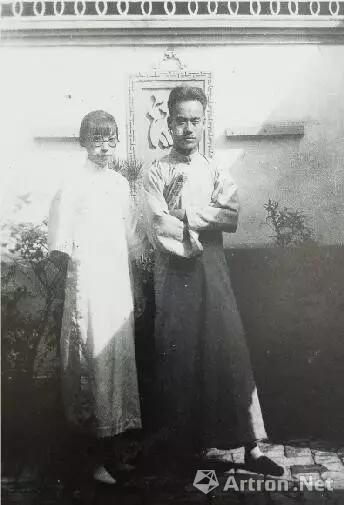 青年时期的王雪涛与夫人徐佩蕸