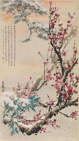 提及王雪涛的绘画风格,人们马上会想到“小写意”这个概念。这个标签贴在他的作品上,确实很贴切。尤其是在民国之后的画坛上,能够几十年如一日地坚持一种风格和面貌去画画,而且丰富和升华了前人的笔墨和色彩,这在绘画史上的确是少见的。准确地说,王雪涛的绘画立足于宋元以来的传统,尤其是他对徐青藤、陈白阳、石涛、八大的参悟,奠定了他笔墨的高古与沉厚。之后,陈师曾、齐白石、王梦白、陈半丁对他的影响可谓是点睛式的里程。陈的文气、齐的率气、王的静气、陈的清气,都在他的作品中有所体现,加之他的勤勉与谨严的天性,成就了他身前身后姹紫嫣红般的灿烂声名。在他与齐白石交往的几十年中,老人家不止一次地盛赞他的绘画,或带溢美,但更多还是由衷。如1933年,题其书画合璧册道:吾贤下笔如人意,羡汝成名鬓未丝。次年又题作:蓝已青矣??杉诎资先诵睦?,青年王雪涛已是位置高标了。王雪涛的绘画取材丰富,笔墨沉著又飘逸,设色秾艳却和谐,兼工带写,时常也借鉴西画之图式与手段,但却毫无刻露之习。这也正是他的绘画一直受人爱待、雅俗共赏的重要秘笈。王雪涛从二十年代始便以鬻画为生计,他了解市场、更了解他们的需求,他作品中明丽清新的格调正是在此过程中渐至形成的。如果说齐白石在大写意花鸟上开拓了新的境界的话,那么,无疑,王雪涛在小写意花鸟的营造中确定了自己的话语。在此,我将之称作“精微的写意”。王雪涛一生与荣宝斋的渊源有自,缘分甚深,这是一段特别的佳话。而今天,北京荣宝拍卖荟萃他各个时期的精品于一处,有荣宝斋旧藏、有社会征集、有家人提供。旨在弘扬、流布王雪涛绘画的人文传统。这,或许是他身后与荣宝斋的又一次因缘邂逅。代为序。