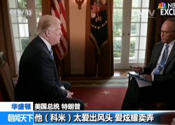 在专访中特朗普评价科米:“太爱出风头,爱炫耀卖弄,联邦调查局被搞得一团糟,这是人尽皆知的?!?/p>