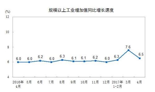 统计局:4月份规模以上工业增加值增长6.5%
