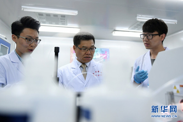 兰州大学核科学与技术学院院长吴王锁(中)带领研究生在实验室做实验(5月9日摄)。冰川、冻土、沙漠,是令人生畏的“苦寒之地”,却也是开展相关科研工作的天然实验室。在祖国辽阔的大西北,有一群寂寞的“追梦人”:他们数十年如一日,行走、蹲守、常驻在人迹罕至的高原、荒漠,扎根冷僻地,甘坐“冷板凳”,聚焦“冷门”学科,几代人接力,用知识、汗水甚至生命,不断创造出世界一流的科研成果,为国家建设立下汗马功劳,为人类进步贡献中国智慧。他们,就是兰州大学和中国科学院西北生态环境资源研究院的科研工作者。新华社记者陈斌摄