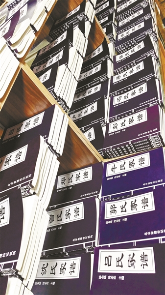 北京一家修谱机构内,摆放着多个姓氏的家谱