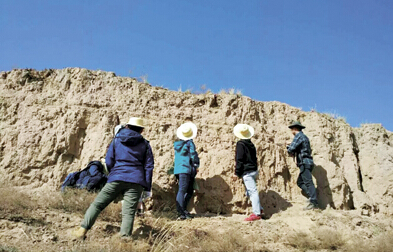 图为踏查时考古人员在断崖上发现聚落遗址。 李树云 摄