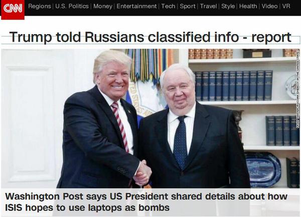 此前《华盛顿邮报》的报道说,特朗普披露的信息涉及“伊斯兰国”,是由美国的一个伙伴国提供的,但该国并未授权美国将其信息与俄罗斯分享。