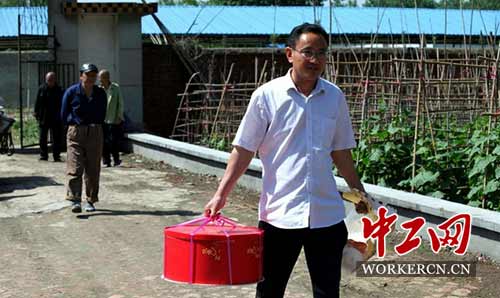 8年前,经人介绍,郑树红来到了新蔡县九七学校打工,在学校餐厅当厨师。2010年4月16日,郑树红一不小心把手插入旋转中的电风扇中,造成右手损伤。魏金山得知后,二话不说立即开车把他送到了驻马店市中心医院进行治疗。郑树红住院的日子里,需要到他家拿新农合医疗本办手续,魏金山才发现他家的家境是如此的困难,简陋的住房内没有一件价值10元的物品,且一家7口人中有5人生活不能自理。后来,6347元的医疗费便由魏金山全部承担了下来,还组织全校师生为郑树红家举行献爱心活动,魏金山又把39762元爱心款和487件生活用品亲自送到了他家。