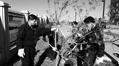 从2014年开始,王岩峰(左)每年都和同事在油田基地植树。