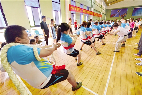 五年来,南宁市工商联坚持每季度举办一次非公经济人士文体活动,加强了与商会和会员的沟通交流。图为非公经济人士拔河比赛。