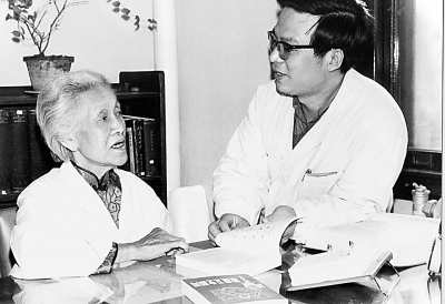 1980年,林巧稚与郎景和(右)。资料图片