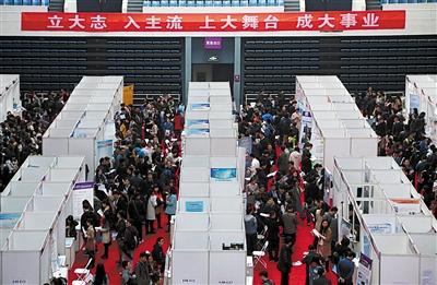 3月16日,清华大学2017年毕业生就业洽谈会上,毕业生们正在投递简历。当天,清华大学举行年度最大规模招聘会,255家用人单位提供3万余个职位。李飞 摄