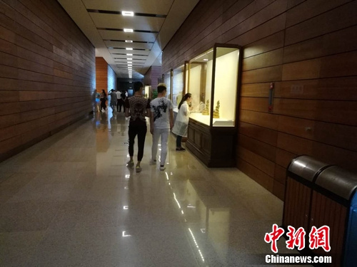 在走廊公共区域的一排艺术品也十分吸引眼球。一尊栩栩如生的“大座虎”让不少参观者流连忘返,大座虎五彩斑斓,两只眼睛生动有神,既憨态可掬又虎虎生威。