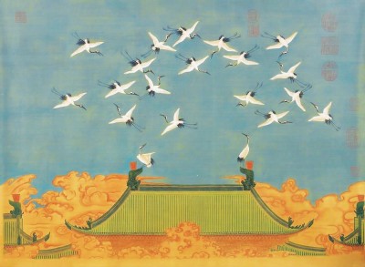▲中国古代绘画的色彩不在绚烂夺目,而在宁静典雅,譬如画出幽远蓝天的这幅宋徽宗《瑞鹤图》。