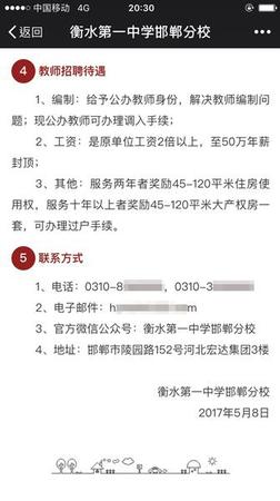 关键词:衡水一中邯郸分校 50万年薪招教师