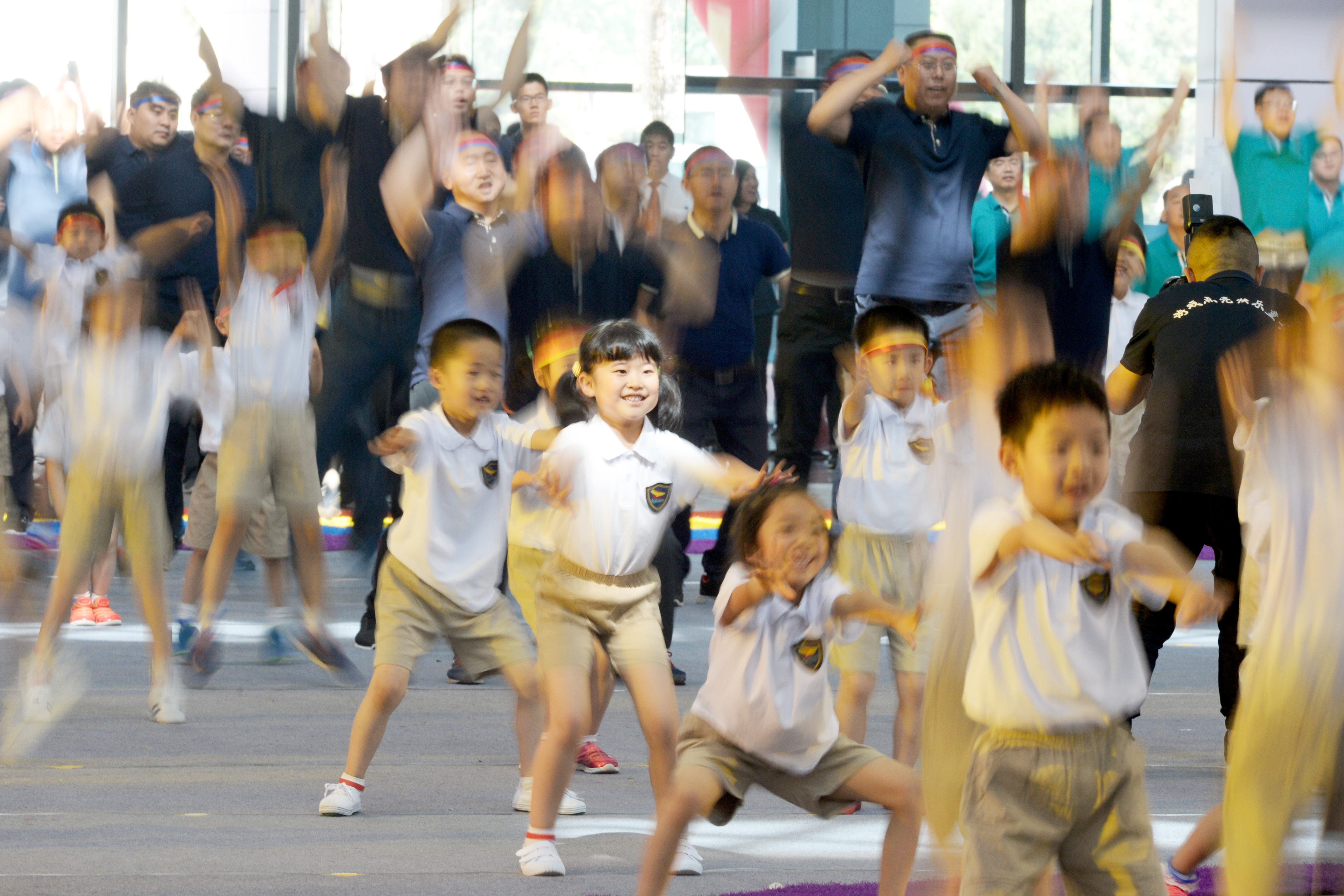 启动仪式上,来自明天幼稚集团的300名儿童与自己的爸爸一起游戏。《快乐毛毛虫》游戏,爸爸们通力合作,运送坐在“毛毛虫”身上的孩子们;《穿越封锁线》游戏,爸爸们用细绳和网布制造障碍,孩子们需要手脑并用穿越“封锁”;《箱子大战》游戏,红、蓝两个阵营的孩子不停翻转地上的箱子,将涂有自己方队颜色的一面转到最上面,随后孩子们退出,爸爸们开始比赛。