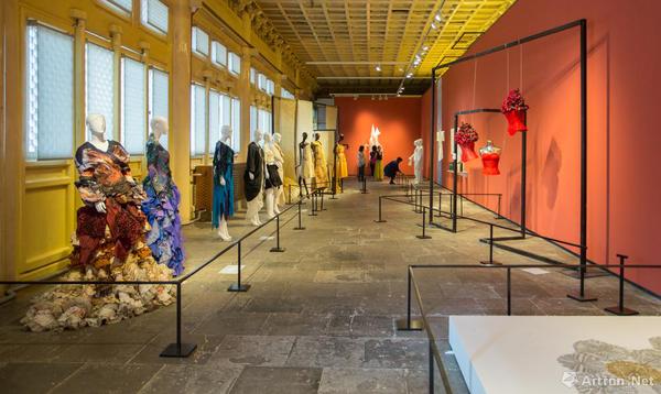 “衣裳之会”部分展览由吕越策划,展出20余位擅长以衣服作为题材的时装艺术家取服装之型、以衣为魂的时装艺术作品。时装艺术是上世纪六七十年代诞生在美国的一种新锐艺术形式,通过“可穿的艺术”运动对工业化、批量化提出反思,时装艺术突破服装外在设计的边界,着重思考服装背后的文化、思想,这样的服装有着创作者的情感,是具有灵魂的作品。时装艺术体现的是时装与艺术的结合,是以服装形式为载体的艺术表达方式。展览同时也展示时装艺术在探索材料更新方面的现状,打破布料局限,出现“软硬兼施”的局面,以及那些用玻璃、陶瓷,金属等硬性材料造就了一批“不能穿”的衣服,这更清晰的提示了时装艺术作品不以是否“能穿”作为作品品格考量的重点,艺术家的着力点转移到对设计社会价值、文化价值和设计立场的思考。