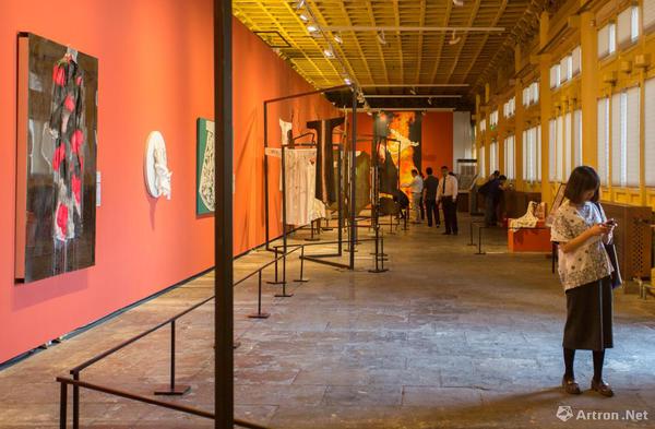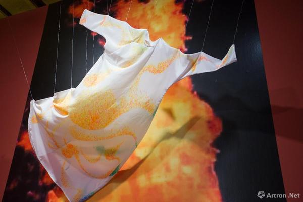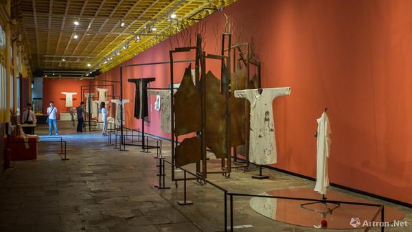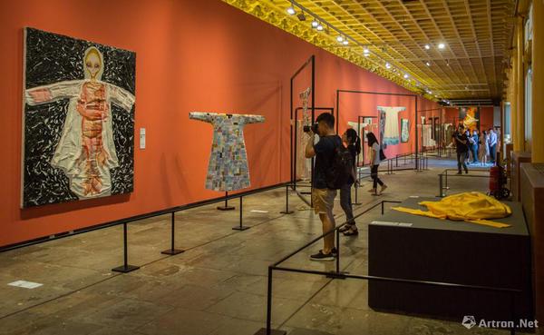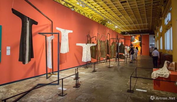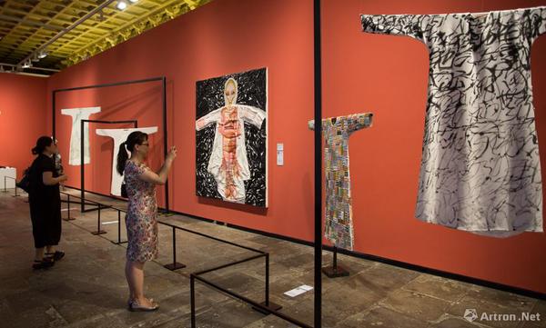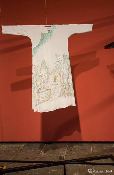 “中西联袂”部分展览由章燕紫策划,展览邀请了30余位中西方有影响力的艺术家以中国传统丝质长袍为“画布”或“元素”,运用个人语言和观念进行创作。这些来自中国、意大利,印度等丝绸之路沿线国家的艺术家们,以衣袍为载体,以绘画、装置、摄影为手段,创作出带有强烈个人观念和面貌形态多样的跨界之作。这些富有张力与非凡想象力的作品,展示了现成品作为一种媒介语言的活力,以及传统文化在当代语境下的多种可能性?!膀蒡鲋?,衣裳楚楚”,服饰除遮羞避寒、美化修饰外,也在社会关系结构中成为身份与气质的象征。此次艺术家实施创作的中式风格衣袍,并没有固定以某个朝代为蓝本,而是参照中国历代经典服饰,经过提炼和设计,抽离出象征着文化的传承和融合的意象丝袍。展览营造空间,东西方文明在这里相互碰撞与激发,从更为丰富宽广的维度唤起人们的思考和想象。