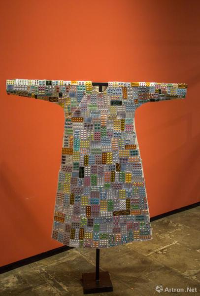 LOOOGOOO 鄢来超 丝质衣袍 包 丙烯 综合材料 32x42cm ( 包 ),160x150cm ( 袍服 ) 2017