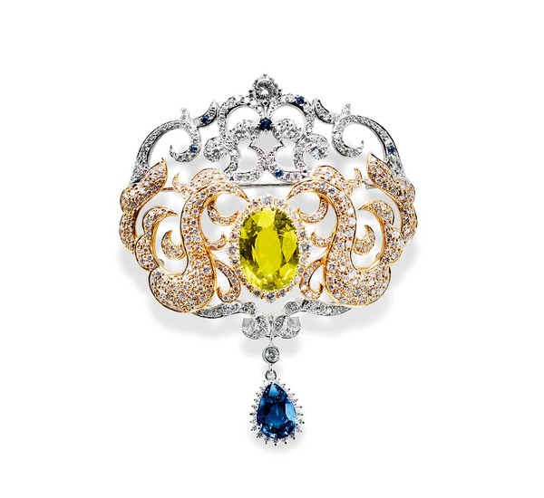 8. 27克拉绿金宝石配2.30克拉蓝宝石胸针