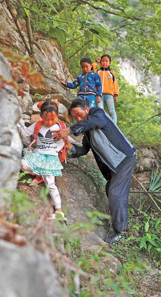“4公里的山路,最高船头山、最险蜂子崖,杨绍书老师每天带着学生往返一遭,硬生生被他们蹚出一条小道来?!苯鹄颊蚪坦苤行闹魅我υ扑怠?/p>