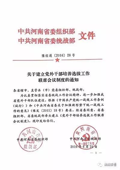 新语君评:党外代表人士队伍建设历来是统战工作的重要方面。为贯彻落实《中国共产党统一战线工作条例(试行)》有关要求,河南省委统战部着力顶层推动,与省委组织部协同配合,联合牵头建立了包括省委宣传部、省委政法委、省编办、省法院、省检察院、省委省直工委、省委高校工委、省财政厅、省人力资源和社会保障厅、省国资委等12个部门的党外干部选拔培养工作联席会议制度,凝聚起强大工作合力,打好党外干部培养选拔使用这张王牌。