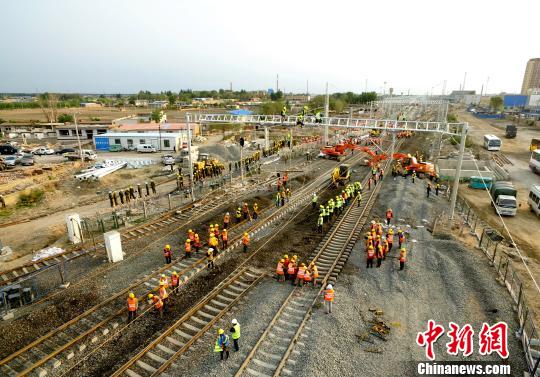 中新网沈阳5月22日电 (记者 沈殿成)5月22日10时,经过中铁十四局集团上千名施工人员350分钟的紧张施工,运行90余年的大(虎山)郑(家屯)铁路原股道在彰武站整体西移40米。就此,连接内蒙古自治区和东北地区的首条高铁——内蒙古通辽至辽宁新民北高铁一次性封锁规模最大、最复杂的转场施工顺利完成,工程建设取得重要进展,为今年9月份全线铺轨创造了有力条件。