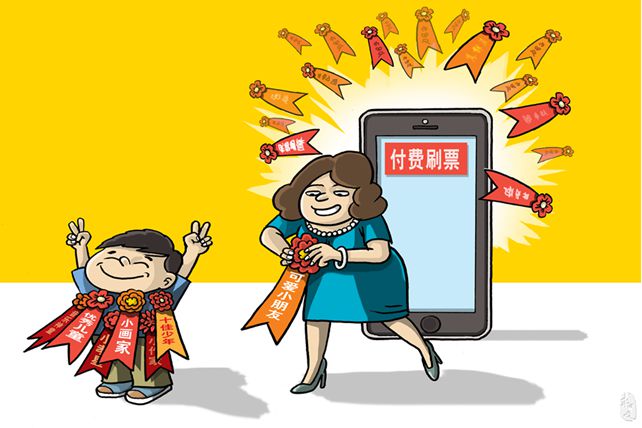某幼儿园举办微信评选“最可爱小朋友”活动。获得桂冠者是金钱刷票“刷”出来的结果。微信圈各种小孩推优评选活动不时跃入家长的视线,时时检验家长们的“以身作则”。忘记价值观日常潜移默化的影响,刷票赢来的自豪无形中扭曲了孩子对能力与荣誉、人脉、金钱之间关系的认知。用金钱“刷”出来的价值认定在家长默许中带给孩子的不是有益启迪,而是虚荣取巧。炫耀远离能力底座,歪曲的价值观影响的不仅是孩子的当下,可能还有未来。