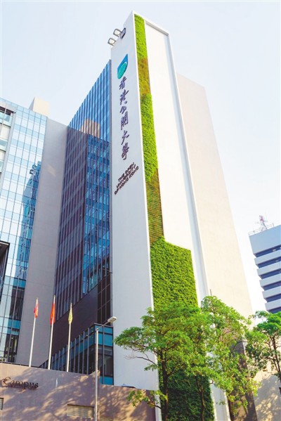 香港公开大学的垂直绿化外墙,高达73米。公开大学供图