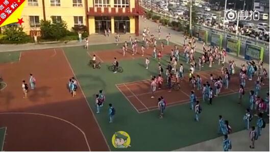 视频中,同学们陆陆续续走进学校,这时操场上响起了国歌,升起了国旗,所有同学、老师及行人全部自发地停下了脚步。同学们站得笔直,向缓缓升起的国旗行注目礼,直到升旗仪式结束,才又三五成群地朝教学楼走去。