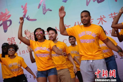 图为美国留学生表演节目。张一辰摄