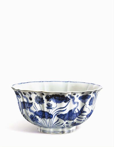 上个月在香港拍出2.29亿港元的明宣德款青花鱼藻纹十棱菱口大碗。