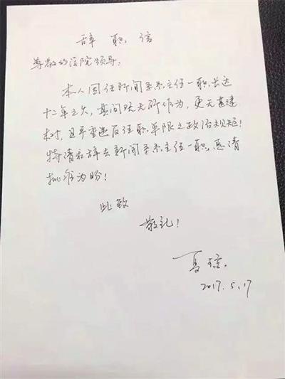 夏琼:辞职是有前因的,此前担任系主任八年到期的时候,我就提出来辞去系主任职务,希望让年轻人上,但是院里迟迟没换。这个学期开始后,新的领导班子上来了,我就又和院里提出来,希望换系主任,包括学科建设,都要让年轻人来做。所以(5月)17日,我就写了辞职信,交上去以后,院领导也很体恤我,很快就批了。院里原则上同意我辞职,认为我做的时间长了,已经口头向我传达了。