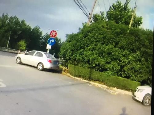 张佳骏执法记录视频中,一辆车违法停在加油站出口和沪青平公路路口处。 本文图片均为澎湃新闻见习记者 李佳蔚 图