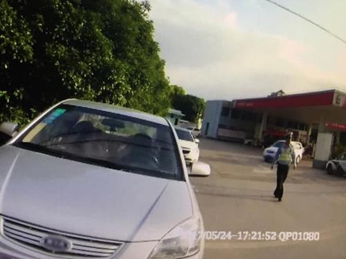 当日执法民警青浦交警支队责任区一大队的张佳骏讲述了当日的情况。5月24日,他在广虹加油站发现了6辆违停车辆,并一一对其发放了违法停车告知单。张佳骏的执法视频显示,当时加油站车辆很多,出口方向正好是沪青平公路,而出口处赫然停着一辆车。“再往里走,出口道路一侧连着好几辆,明显都是违法的,这样停非常危险?!闭偶芽ニ?。