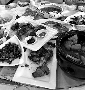 ▲宴请结束,菜品剩满桌。