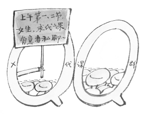 如今大学校园内,“有偿代课”成为一些学生“不能说的秘密”。只要有需要,在兼职代课群里喊一句,就会有人响应。近日,记者调查发现,部分高校学生钻老师“认不全人”的空子,花钱雇人代课。一些兼职代课学生每周代四五节课,一个月收入近千元。此外,更有代课中介按代课双方需要匹配的年龄、样貌等,按次抽取佣金,形成了一条校园内的灰色产业链。( 5月25日《北京晨报》)
