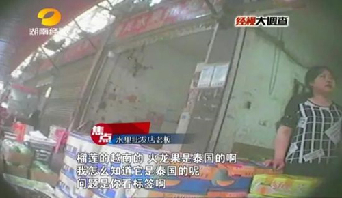 通过查询,越南的榴莲没有获准进入国内水果市场,泰国的火龙果也没有获准进入我国市场。随后,进入这家批发商贩的仓库发现,这箱所谓泰国进口的“火龙果”其实是国内的箱子。