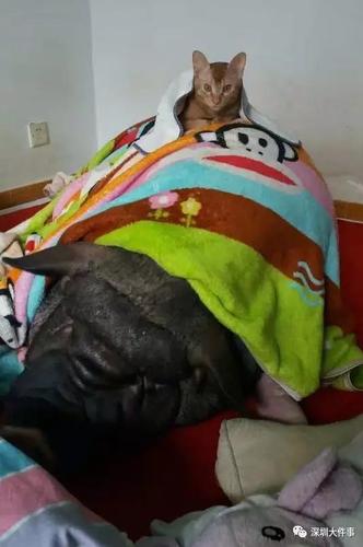 “小猫躺在它身边时,它都不敢放下脚,怕踩到小猫?!毙∵怂?,肚肚其实有一定的攻击性,比如家里来了陌生男人,讲话声音有比较大,它就会表现出一种敌意,“但它对小猫不会,可能是母爱吧”。