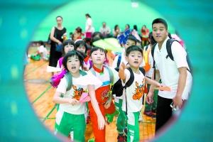 昨日上午,在荔湾区龙津小学,孩子们对着目标放飞纸飞机,乐此不疲。广州日报全媒体记者 苏俊杰 摄