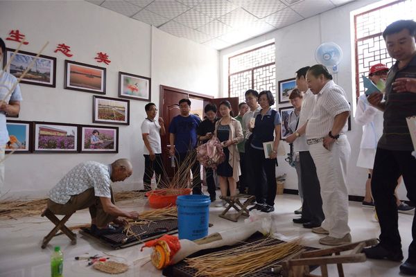 这是5月28日考察团一行在柳洼村考察传统手工柳编工艺。