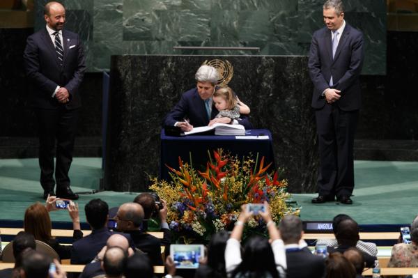 美国总统特朗普2017年6月1日宣布退出《巴黎协定》。这是2016年4月22日在位于纽约的联合国总部拍摄的《巴黎协定》高级别签署仪式现场的资料照片。新华社资料