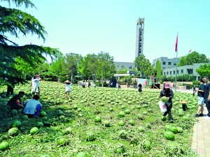 “一夜之间,花家地变成‘瓜家地’了?!弊蛉?,中央美术学院草坪一夜间被西瓜铺满,引来不少网友关注,有人大呼“好玩”,也有人觉得太浪费。据了解,这是中央美院本科生毕业作品展前,学校送给学生的“小惊喜”。瓜田从昨日凌晨4点开始布展,共耗用3500个西瓜,相关负责人介绍,校方希望以此特殊形式将老师、学生与学校之间联系起来。据了解,西瓜在昨晚毕业作品展开幕后就赠送给了毕业学生。